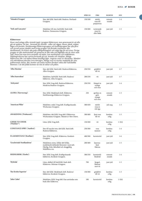 bågar och portaler. Storblommiga klätterrosgruppen och kordesiigruppen har ofta färre juli-aug 1-6