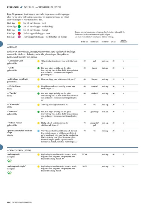 efter var de trivs. Vid varje perenn visar en färgmarkeringar för vilket