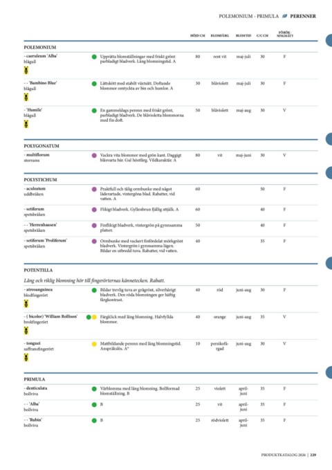 HÖJD CM BLOMFÄRG BLOMTID C/C CM FÖRÖK-