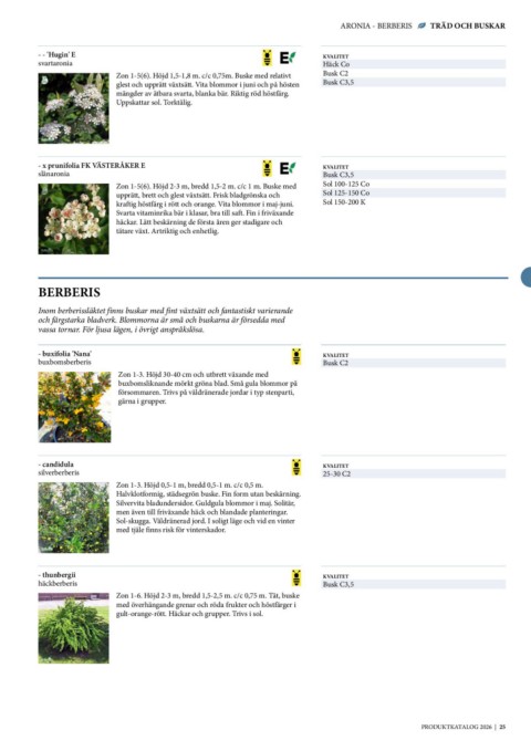 ARONIA - BERBERIS TRÄD OCH BUSKAR