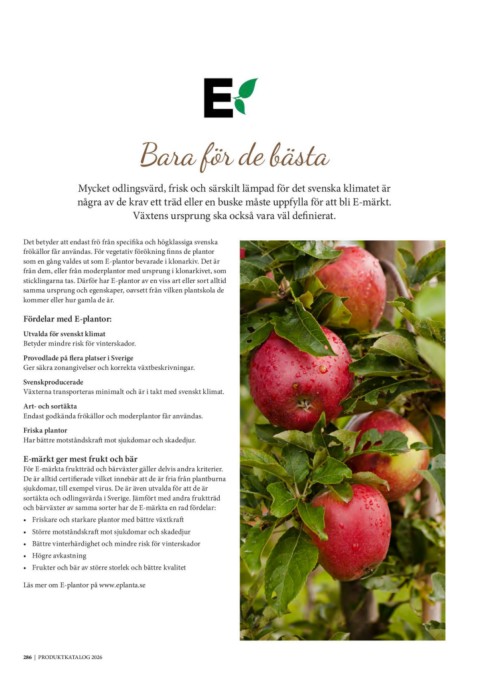 För E-märkta fruktträd och bärväxter gäller delvis andra kriterier.