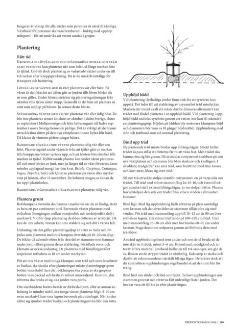 bör inte planteras senare än slutet av oktober i södra Sverige, slutet Nyplanterade träd måste bindas upp i blåsiga lägen. Stödet håller