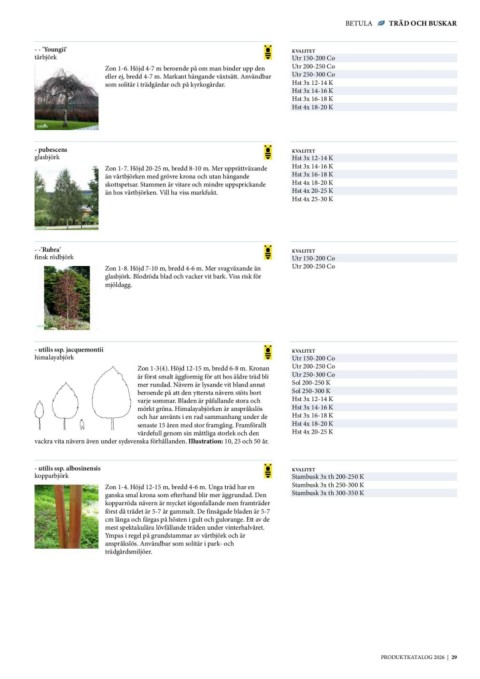 BETULA TRÄD OCH BUSKAR
