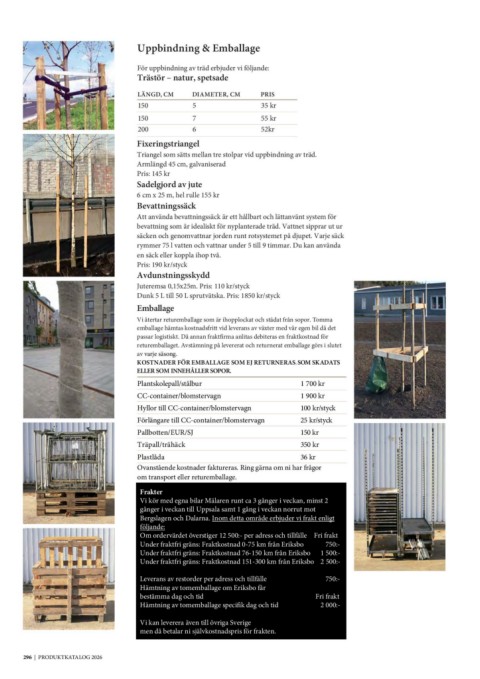 emballage hämtas kostnadsfritt vid leverans av växter med vår egen bil då det