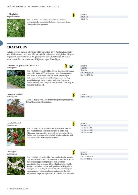 TRÄD OCH BUSKAR COTONEASTER - CRATAEGUS