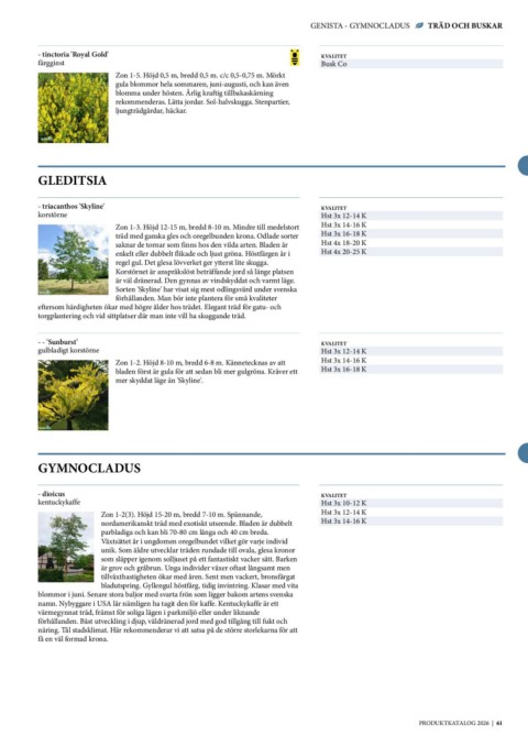 GENISTA - GYMNOCLADUS TRÄD OCH BUSKAR