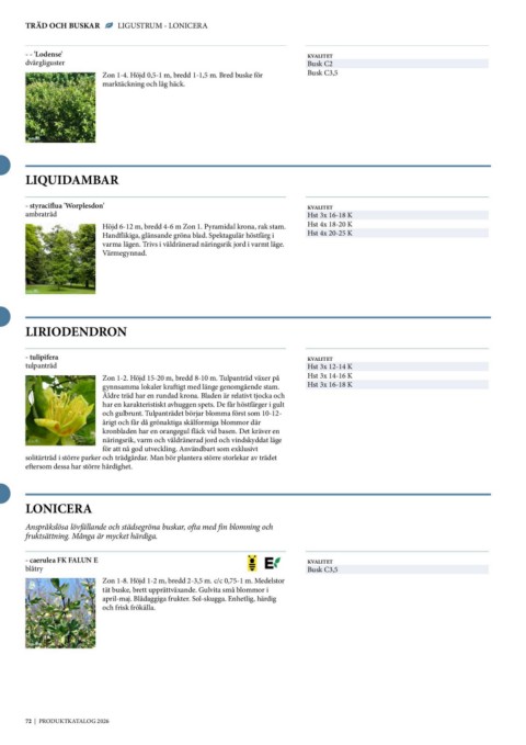 Höjd 6-12 m, bredd 4-6 m Zon 1. Pyramidal krona, rak stam.