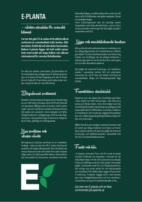 terväxter, fruktträd och bärväxter lanserades. samarbete med SLU.