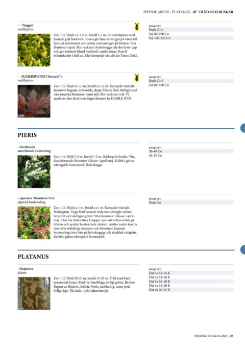 PHYSOCARPUS - PLATANUS TRÄD OCH BUSKAR