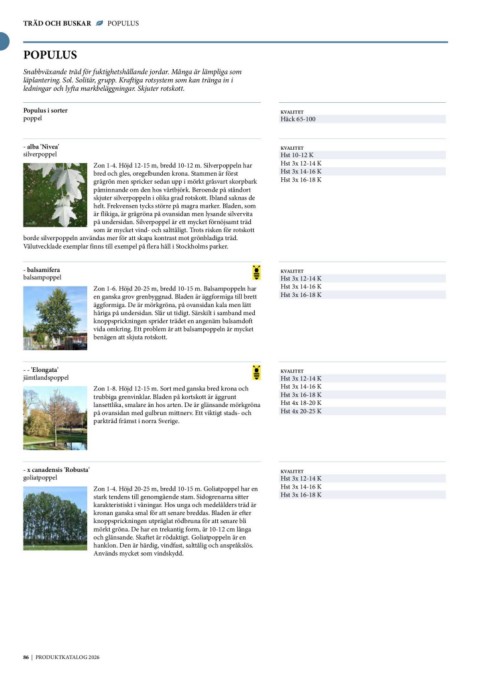 Zon 1-4. Höjd 20-25 m, bredd 10-15 m. Goliatpoppel har en Hst 3x 14-16 K
