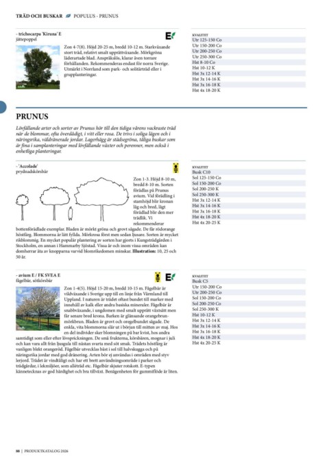 TRÄD OCH BUSKAR POPULUS - PRUNUS KVALITET