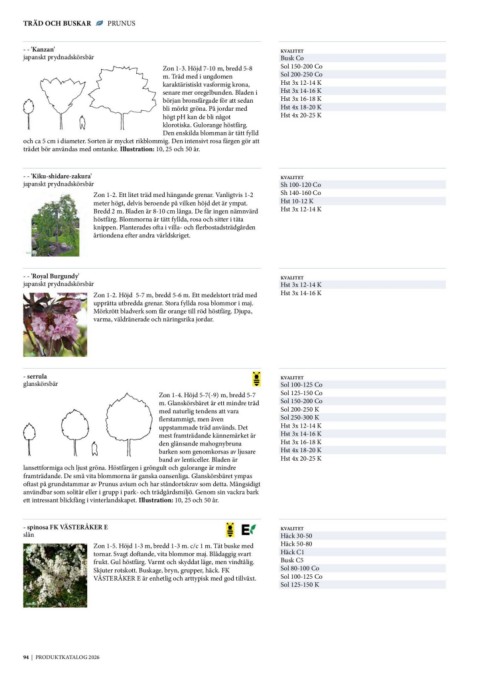 Zon 1-2. Ett litet träd med hängande grenar. Vanligtvis 1-2 Sh 140-160 Co