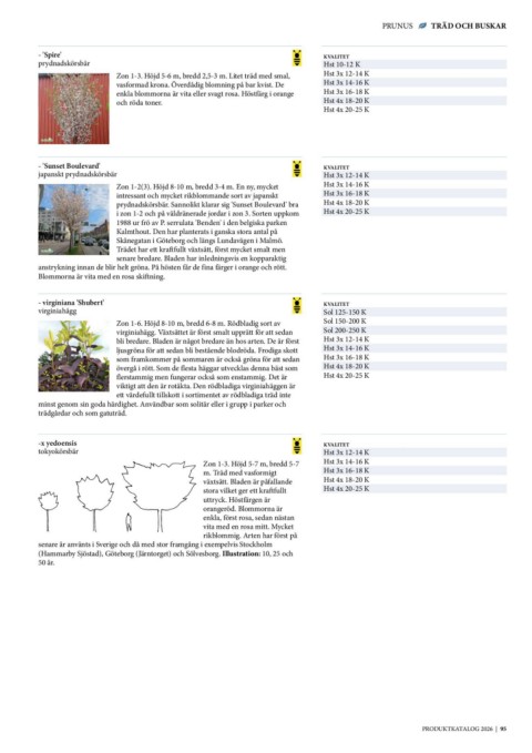 Zon 1-3. Höjd 5-6 m, bredd 2,5-3 m. Litet träd med smal,